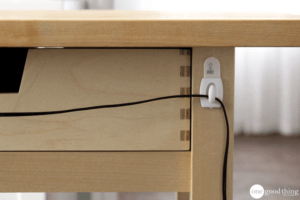 Vous détestez voir le désordre emmêlé de câbles derrière votre salon ou vos meubles de bureau? Fixez des crochets à l’arrière des pieds de vos meubles pour les utiliser comme guides pour les câbles de vos appareils électroniques. Guider les câbles le long des pieds de vos meubles les gardera cachés de la vue et donnera à vos meubles un aspect plus propre et plus organisé.