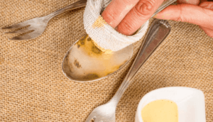 Lorsque vous essayez les options suivantes, il est important de noter qu’une force excessive n’est pas nécessaire et s’il semble que la force soit ce qu’il faut, vous devez passer à une autre solution de nettoyage. En évitant une force excessive, vous risquez moins d’endommager vos couverts en acier inoxydable.