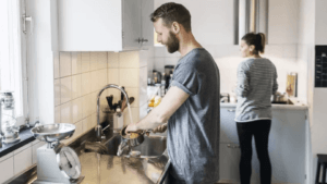Assurez-vous de bien rincer, en vous assurant que tous les résidus savonneux ont été rincés et enlevés.