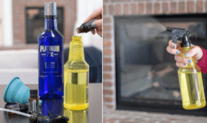 Remplissez votre flacon pulvérisateur propre de vodka, d’eau ou d’un mélange 50/50. Versez les huiles essentielles dans un flacon pulvérisateur et secouez vigoureusement pour combiner.